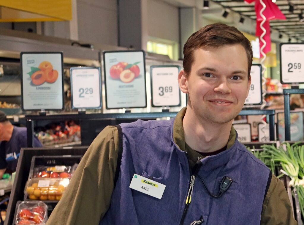 AXEL: Päivittäiset kohtaamiset asiakkaidemme kanssa ovat merkityksellisiä. Näin voi päätellä palautteista, joissa kehutaan meidän hyväntuulisuutta. Etenkin yksin asuville ikäihmisille kaupassa käynti voi olla päivän ainoa sosiaalinen tapahtuma, joten muutaman sanan vaihtamiseen on meiltä löydyttävä aina aikaa.